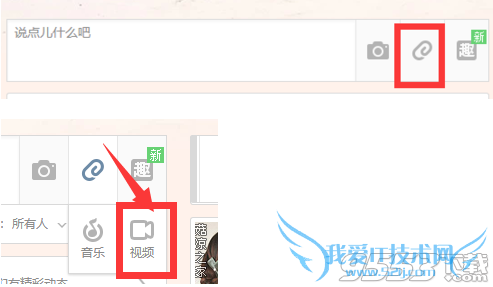 现在打开空间,点击空间说说中的视频图标,如图所示进行操作。