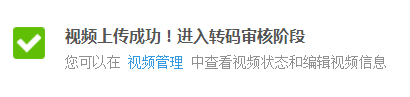 视频上传成功,就会进入转码审核,时间一般是半小时左右,半小时后,您就可以看到自己在优酷上传的视频了。