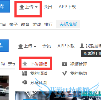 注册成功后,就可以登录优酷了,登录后,将光标拖到“上传”,然后选择“上传视频”点击进入。