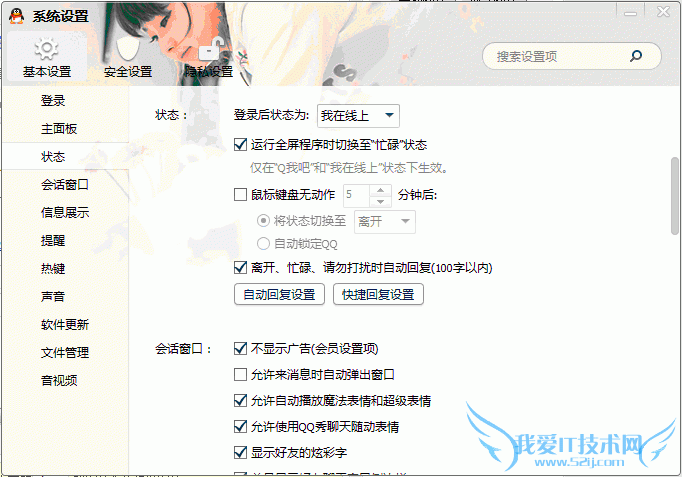 在鼠标无动作的时候自动锁定QQ,你可以设置多长时间自动锁定QQ的!