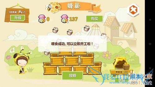 喂养成功后会给出提示,显示“喂养成功,可以放蜂啦”