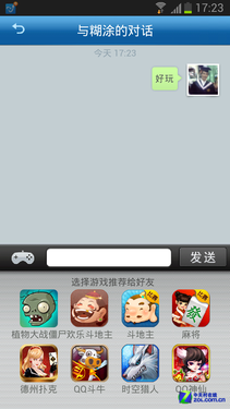 不用发短信,也不用特意安装QQ,在手机QQ游戏中,同样可以与好友进行聊天对话。