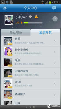 利用QQ号登录到手机QQ游戏后,在个人中心里就可以看到QQ好友列表,并且可以看到每位好友正在玩哪些游戏。
