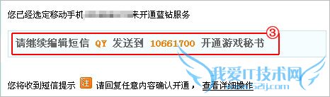 2、然后请您按照页面上的提示编辑短信QY发送到10661700,发送后您将收到短信提示,您回复任意内容确认开通后即可开通蓝钻贵族服务。
