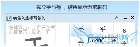 QQ五笔输入法2.0正式版让这一切成为浮云!遇到难拆字不用一遍一遍的尝试,直接打开手写板,写出想要打出的字即可,同时可以查看正确的五笔编码,方便了以后的输入。右击状态栏打开菜单“五笔工具—手写工具”开启独立手写板,以鼠标代笔,轻松写出想要输入的字,右侧候选栏字鼠标停留即可显示对应在五笔编码,轻松搞定难拆字!