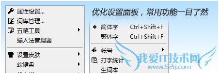 针对五笔用户追求简约、快捷的个性,QQ五笔输入法2.0正式版对设置面板进行全面优化,不需要复杂操作,即可满足五笔用户所有常用操作。简、繁切换,打字统计调出更快捷,直接可以通过右键状态栏直接调出,方便了用户使用。