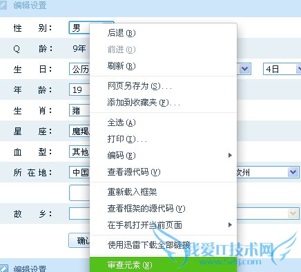 我们常规的凊况下修改QQ资料,有的是必须要填写/选择的,记得早在QQ2004左右,设置QQ资料是可以很随意的,那样设置可以很个性。不过今天小编再跟大家分享个QQ技巧:利用审查元素清空QQ资料的方法。非自慰哦!