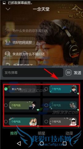 3)在编辑框中点击右边【皮肤图标】,选择你要的弹幕气泡即可。(如下图)
