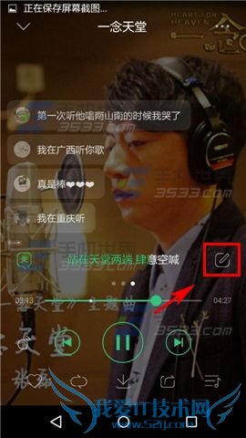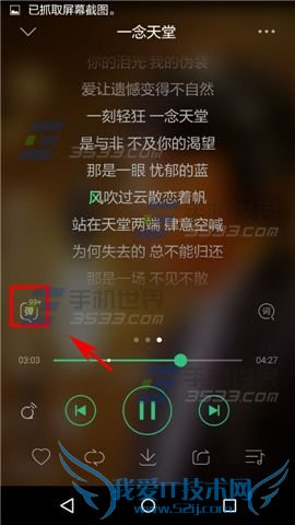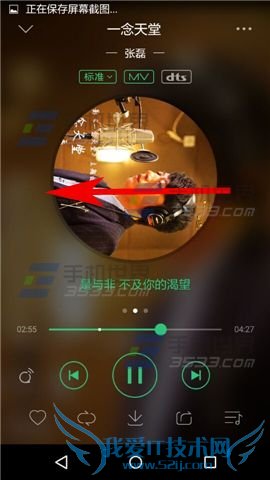 1)打开手机QQ音乐,接着点击下方【播放器】进入播放页面,【向左拨】进入歌词页面。(如下图)