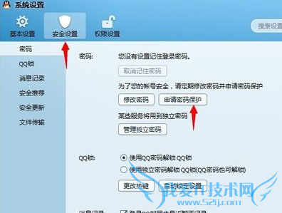2、在“安全设置”里点“申请密码保护”进入QQ安全中心