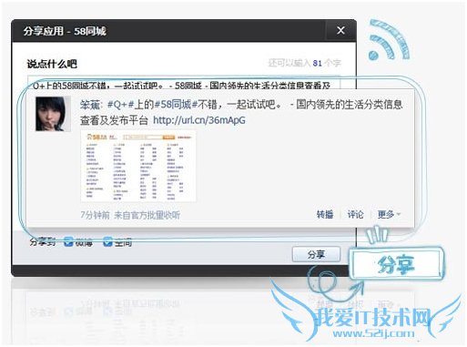 支持在默认分享内容里显示当前分享的应用名称,支持以话题的形式分享到微博;