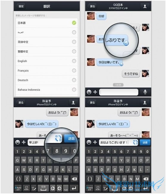 QQ日本版安卓新版,除保持原有的接收信息对应19国语言翻译外,更在聊天输入框内追加了“中日互译”按钮,轻松一点聊天信息就能将输入的文字进行中日互译后发出。