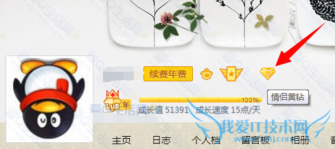 3、QQ空间可以看到“情侣黄钻”图标已经点亮。如下图: