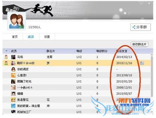 4、点击成员以后进入到成员窗口,在窗口上面可以看到群成员的最后发言,这样就可以查看到群成员的活跃度了。