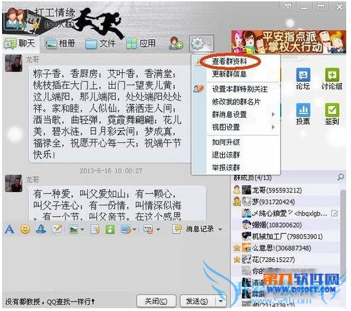 2、点击设置按钮后面的下拉箭头以后出现下拉菜单,在菜单上面点击查看群资料,如图所示:
