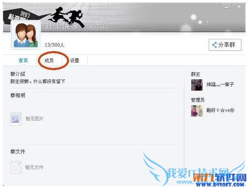 3、点击查看群资料以后进入到群资料窗口,在窗口上面点击成员,如图所示: