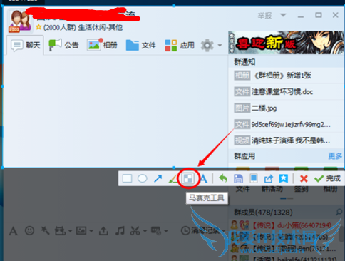 2、与平常截图步骤一样,截出自己想要的一部分图,然后大家会发现第五栏的工具多出了新图标,该图标就是新增道具马赛克功能。
