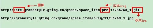 第一处更改的连接。我们把刚刚的连接地址 先改一下了在复制进去!首先把前面的 ctc. 删掉。然后把中间的pre改成orig。。然后把后缀gif改成jpg。改好之后把他复制到代码里面第一处要更改的地方