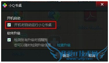 答: "小Q书桌"可通过两种方法设置成开机启动:右键点击启动栏的"小Q书桌"图标,勾选开机启动;在设置中心中勾选"开机自启动" 。