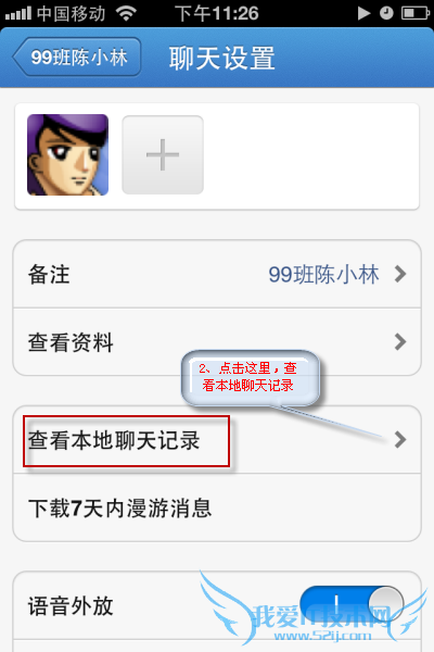 1、登陆iPhone QQ,打开你与某个QQ好友的会话记录:
