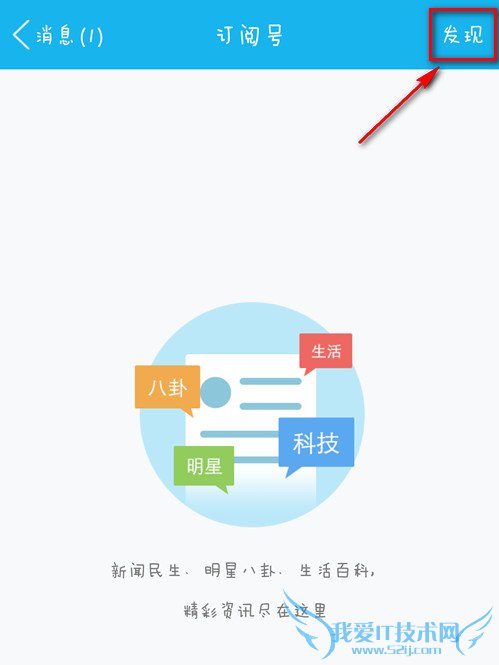 初次使用订阅号你会发现里面其实什么也没有,那我怎么通过订阅号获取资讯呢?点击右上角的【发现】你就知道了。