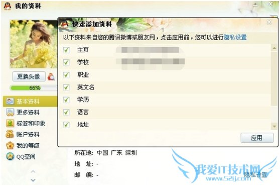 资料完整度还没达到100%?懒的写?不想写?不知道写什么?没关系!资料填写助手帮您轻松搞定。资料填写助手会自动将您朋友网或腾讯微博中已填写的资料进行展示,供您选择是否要自动填入QQ中,完整个人资料就是如此轻松。