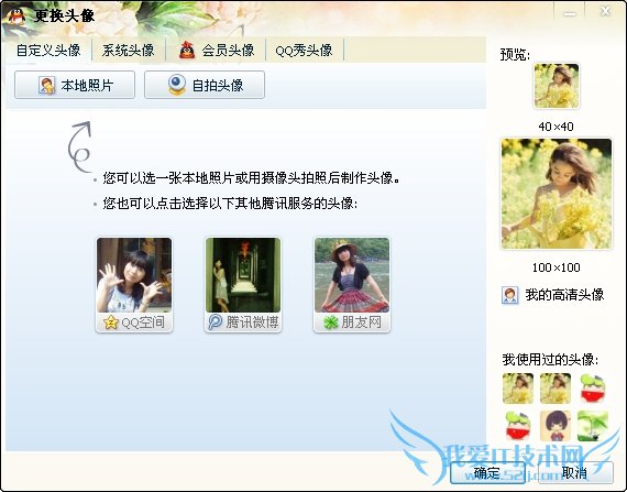 新的头像系统可以让您自由选择在QQ空间、朋友网、腾讯微博等产品中使用的头像设置为QQ头像哦,头像更真实,聊天更开心了。