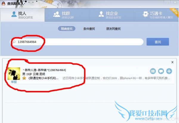 再用别的QQ查找,直接输入手机号码,就可以查找到了。