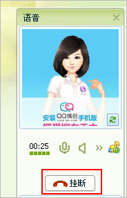 3、当您看到聊天窗口中右边窗口显示中有“挂断”按钮,说明您已经链接成功,可以开始与好友说话了;