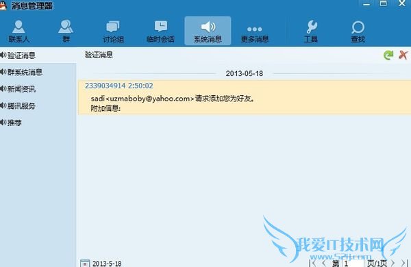 好了 现在就会出现别人加你的验证信息了 点右上角的叉叉就可以咯