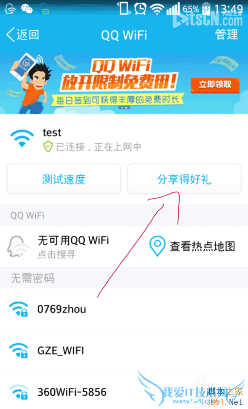 4、现在就来看看如何分享吧,因为若没有人分享,那就没有那么多免费WIFI了。