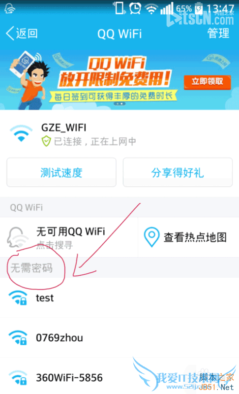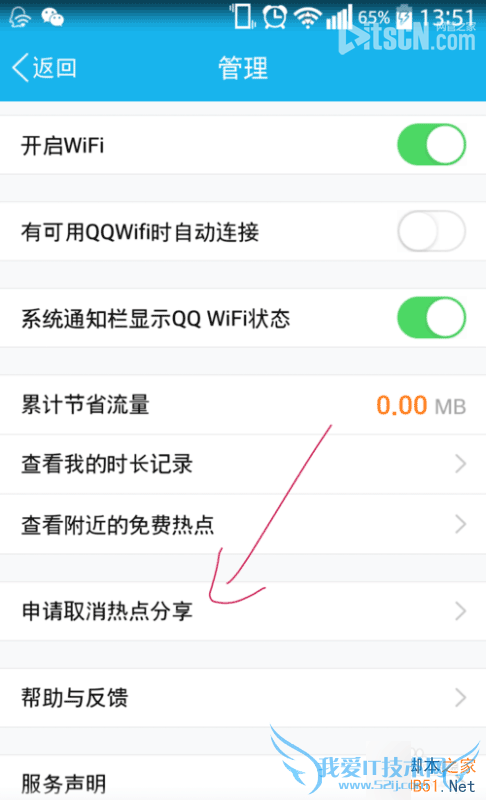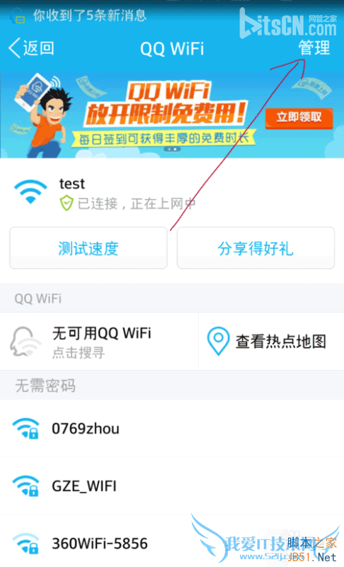8、若需要取消分享,可以进入QQ WiFi管理界面。