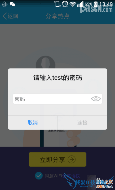 6、需要输入WIFI密码,证明这个分享的WIFI是你的。至少这样的证明。