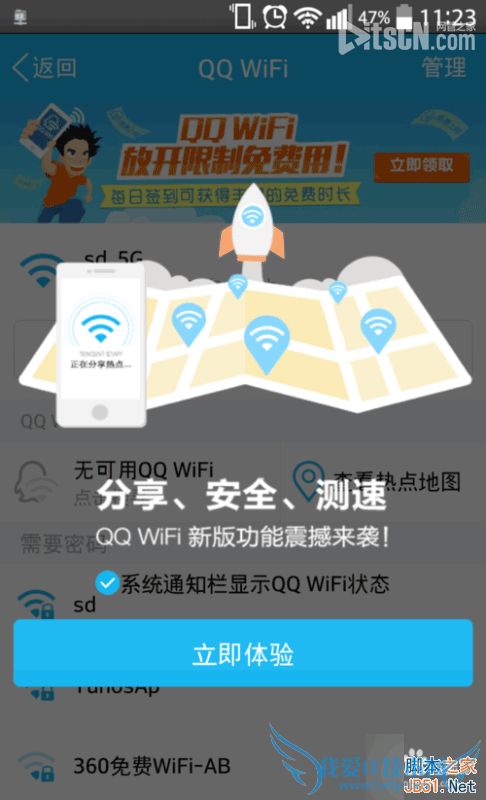 以前使用的过QQ WiFi公测版,模式与功能与其它免费WIFI软件没多大创新,同时使用的体验不友好。现在QQ手机免费WiFi后面去掉公测版几个字。因为经常使用手机QQ,又忍不住去一探究竟,看看QQ WiFi现在成什么样子了。