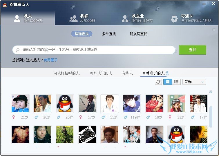 3.“查看附近的人”这一功能会自动帮你定位,查找附近的美眉。