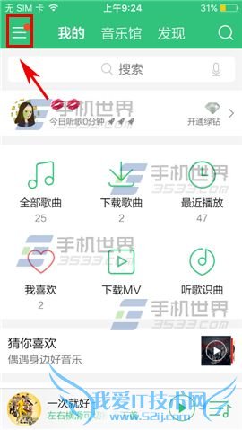 打开手机QQ音乐进入应用首页后点击左上角【三】,接着点击【简洁模式】右边开关即可。(如下图)
