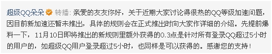 看了上面给力的新等级特权介绍,是不是希望自己的QQ等级可以火速增长呢?超级QQ用户管理产品经理朵朵在微博上透露,新的等级加速规则将会在11月中旬左右推出,而QQ等级新特权马上都要来了哦!