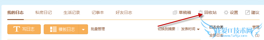 3、在空间日志页面有个“回收站”,我们删除的说说日志什么的就在这里头