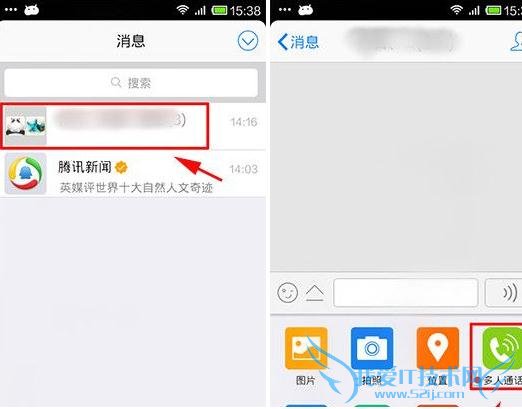 4、当你退出后就成立一个讨论组,如需再经过多人通话,点击对话框左边的按键即可看到多人通话这一栏。