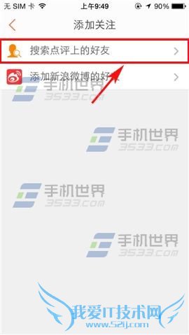 2)在右上方点击【+】,点击【搜索点评上的好友】。