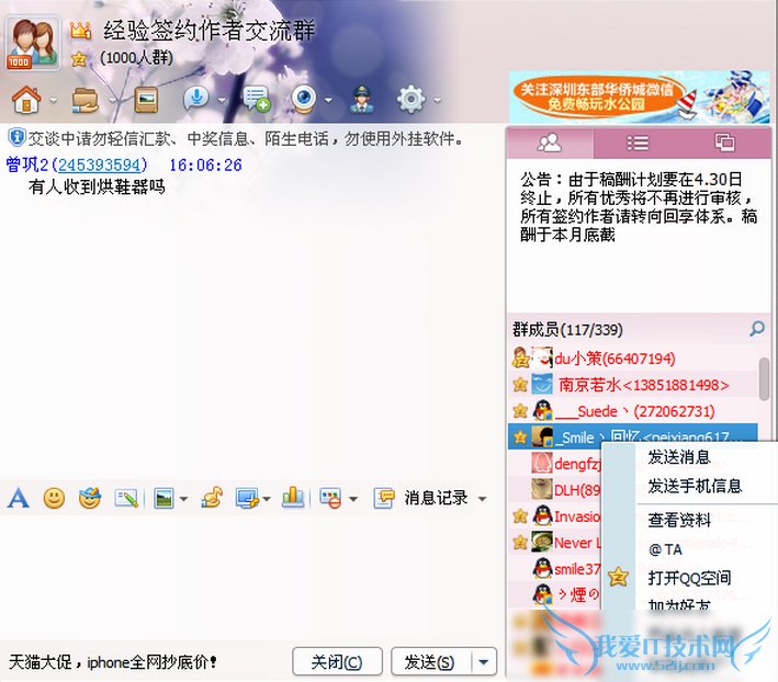 或者是在群成员那里,找到你要AT的那个人,点一下右键,然后就会出现@他的字样,这个时候,点击一下@就可以@到对方了。
