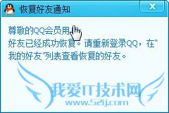 然而我们现在要做的就是等会系统的回复了,收到回复后就可以将被删除的好友恢复回来啦。如图所示: