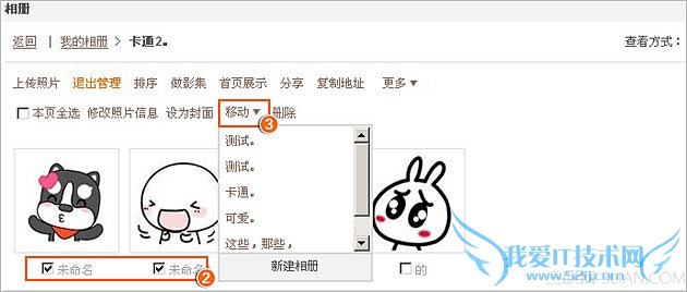 二、若您需要移动一批照片。请您打开相册的管理模式,选中要移动的照片,然后选择移动到哪个相册。如图: