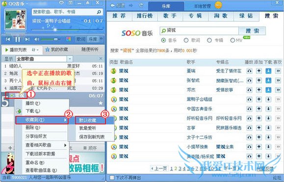 鼠标左键点一下正在播放的歌曲,选中歌曲后歌曲信息会显示的颜色稍微深一些,然后再鼠标右键点击一下,会出现选项,选择“收藏到”=》“默认收藏”,此收藏直接同步到QQ空间的音乐收藏列表里(QQ音乐播放器或空间音乐盒收藏的歌曲一般无法立即同步显示,建议您可以过几分钟后查看)。