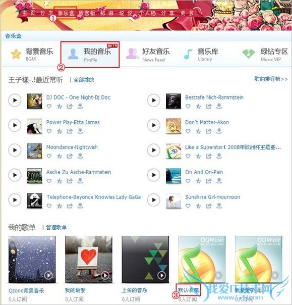 登录您QQ空间,选择音乐盒=》我的音乐=》默认收藏=》找到您收藏的网络音乐歌曲