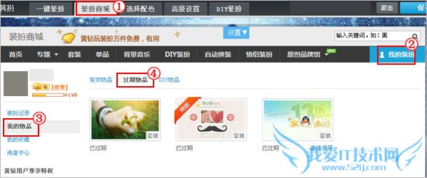 第二步:在装扮商城点击“我的装扮”=》“我的物品”=》“过期物品”,即会显示目前已过期的物品。