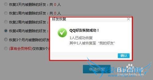 选择点击“恢复QQ好友”,一般QQ最多可以恢复三个月内被删除的好友,QQ会员就可以恢复六个月被删除的好友哦。