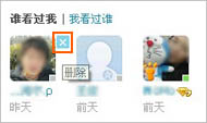 第二步:在个人中心页面右方找到“谁看过我”,在页面中把鼠标移到您想要删除好友最近访客记录的头像上,之后会显示出删除的按钮,请点击删除按钮;