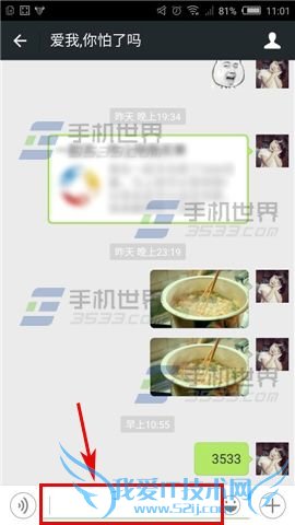 1)打开微信,进入首页后随便点击一个【会话框】,进入到点击【输入框框】。(如下图)