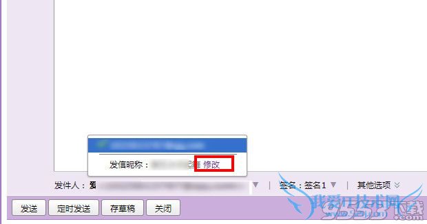 2、然后点击编辑好的邮件下方,发件人的下拉,点击“修改”